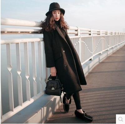2015秋冬新款呢大衣寬松加棉韓版中長款繭型加厚羊毛呢外套女 /