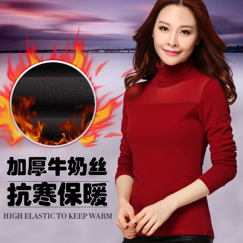 2015韓版冬加絨加厚款高領大碼網紗打底衫女上衣小衫女裝批發(fā) /