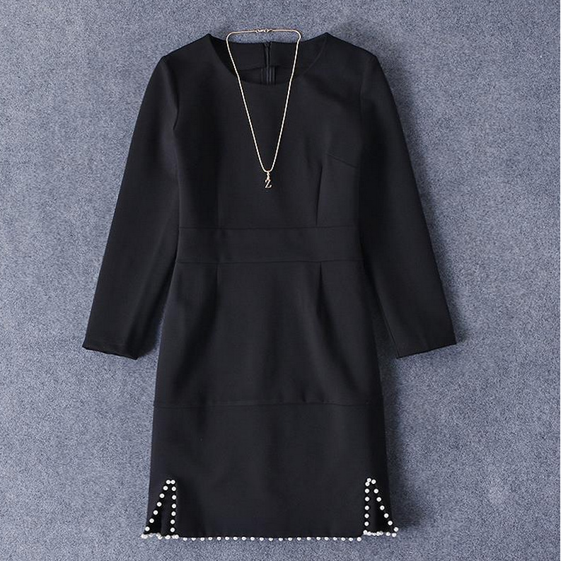 2016春新款金星脫口秀孫儷同款簡約黑色釘珠羅馬連衣裙現貨 /