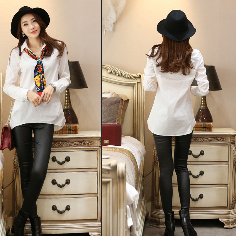 襯衫2016年春款新款韓版大碼女裝純棉長袖上衣白色襯衣 /