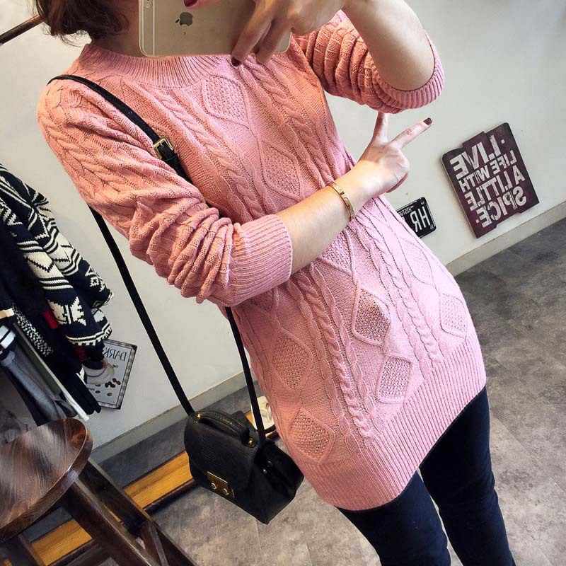2015秋冬季新款韓版毛衣女純色套頭針織衫中長款修身學(xué)生長袖上衣 /