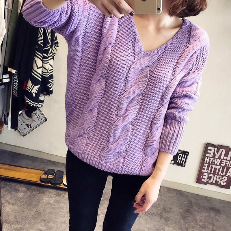 2015秋冬新品學(xué)生V領(lǐng)毛衣女韓版寬松套頭麻花針織衫女裝長袖上衣 /