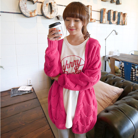 麻花純色中長款針織衫開衫女 韓版寬松外套女士毛衣女裝春秋新品 /