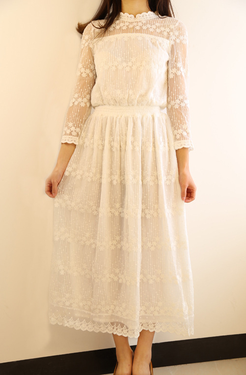 獨(dú)家2015早秋新款連衣裙日系甜美顯瘦氣質(zhì)刺繡蕾絲仙女長裙修身 /