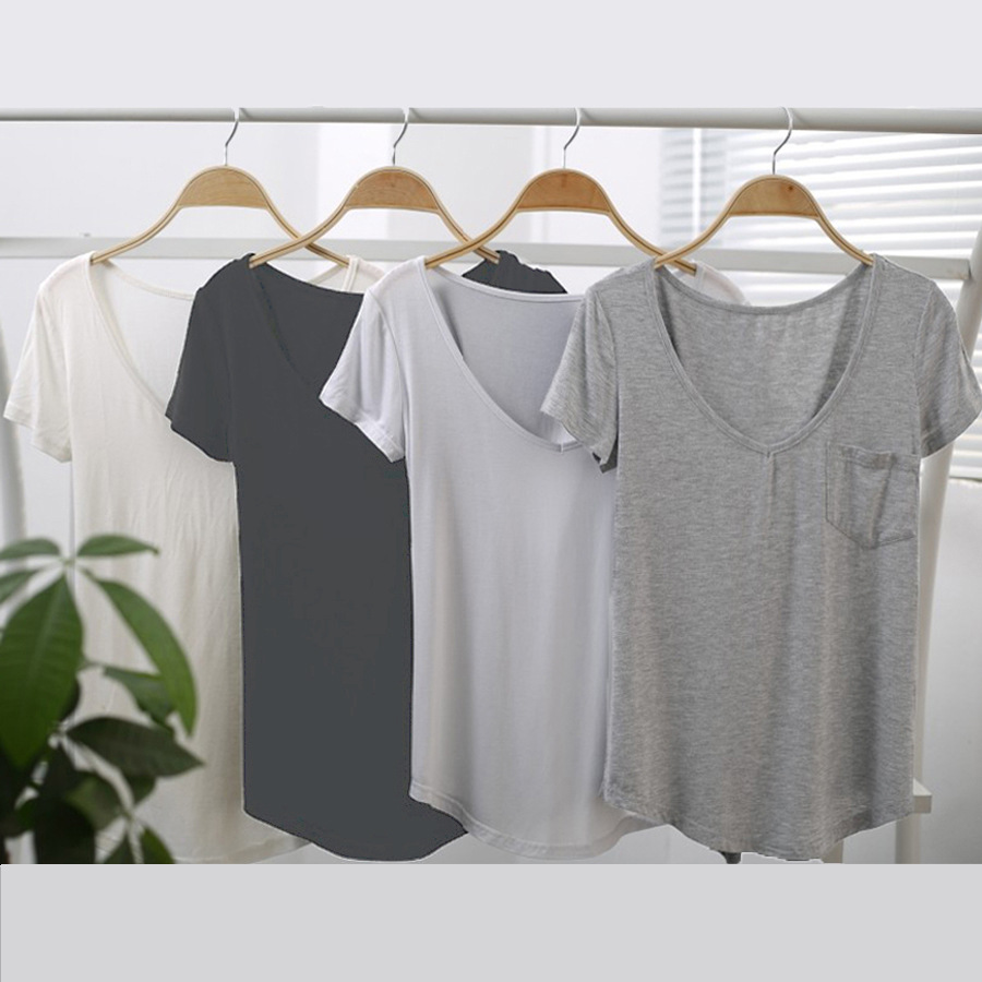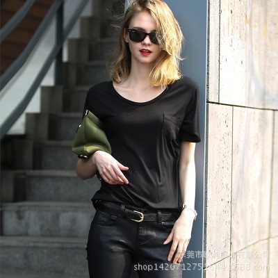 歐美大碼女裝夏季寬松短袖V領(lǐng)口袋莫代爾t恤打底衫阿里巴巴貨源網(wǎng) /