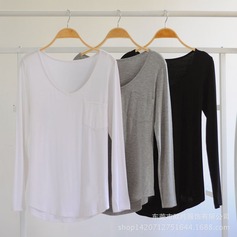 春裝新款大碼女裝歐美寬松V領(lǐng)莫代爾長袖t恤打底衫阿里巴巴貨源網(wǎng) /