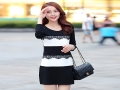 2015秋冬裝新款韓版時尚大碼長袖拼色修身蕾絲打底連衣裙女裝批發 /