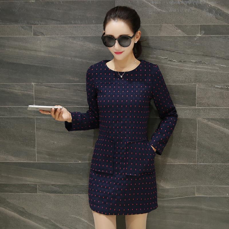 秋冬爆款韓版時尚大碼長袖寬松顯瘦a字裙打底毛呢連衣裙女裝批發 /