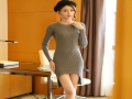 秋冬女裝新款韓版中款打底裙 修身性感包臀針織旗袍式女式連衣裙 /