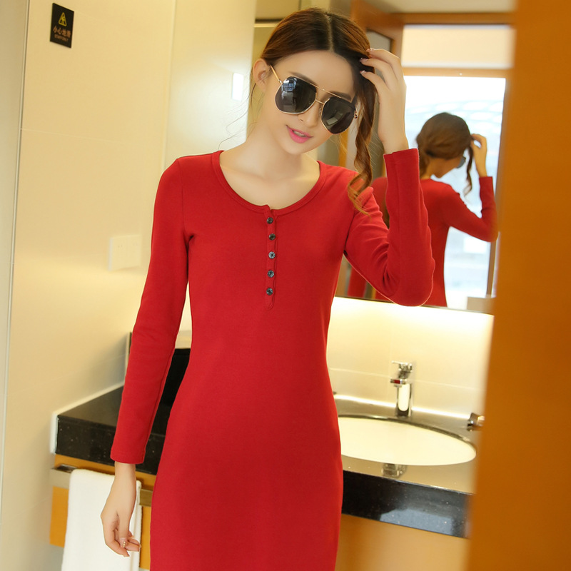 2015秋季韓版女裝圓領修身包臀裙長袖顯瘦休閑百搭打底短裙連衣裙 /