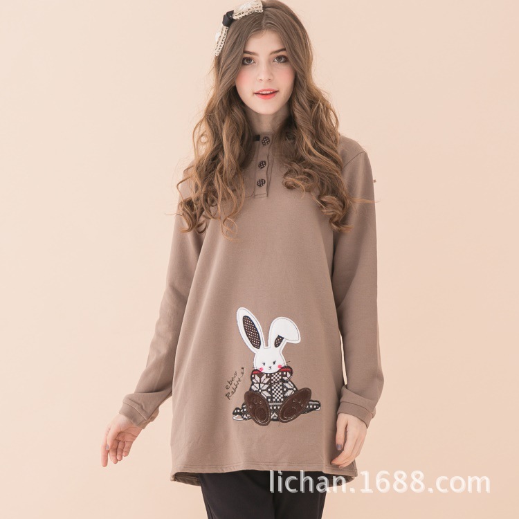 2015秋冬新款韓版加肥加大碼女裝胖MM加絨雙領(lǐng)三扣兔長(zhǎng)版衛(wèi)衣外套 /