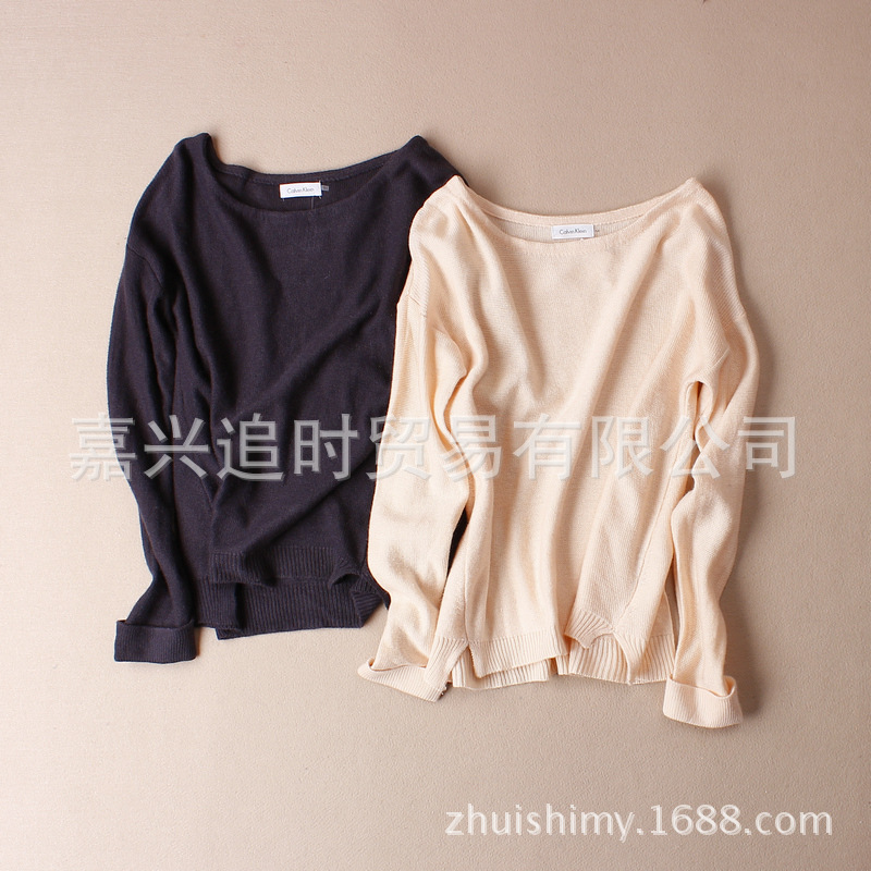 原單精品尾貨女裝秋冬新款一字領長袖套頭針織衫羊毛衫 /
