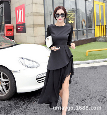 秋季時尚新款不規則不對稱針織拼接裙子兩件套裝一件代銷爆款熱銷 /