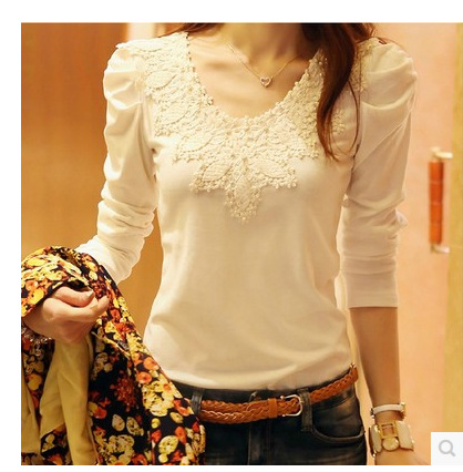 2015秋冬新品韓版大碼女裝打底衫上衣蕾絲女長袖t恤 /
