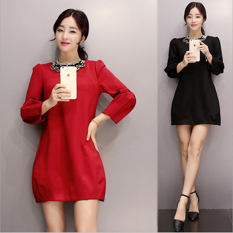 歐洲站2015秋季歐美新款時尚優雅彈力修身腰燈籠裙直筒百搭連衣裙 /