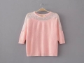 拉夏貝爾2015年秋冬季新款蕾絲拼接女中長款長袖圓領毛衣30006058 /