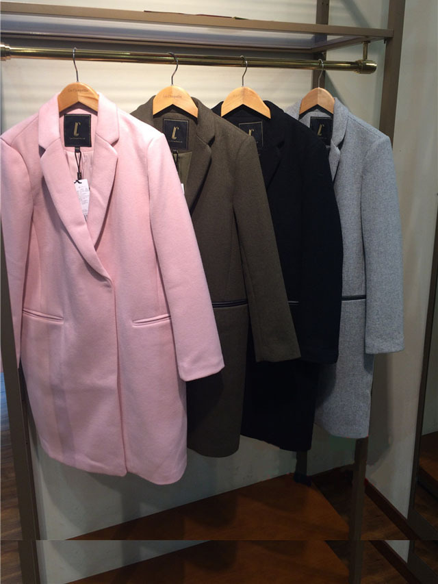 拉夏貝爾2015冬裝新款韓版修身中長款毛呢大衣女外套10007981 /