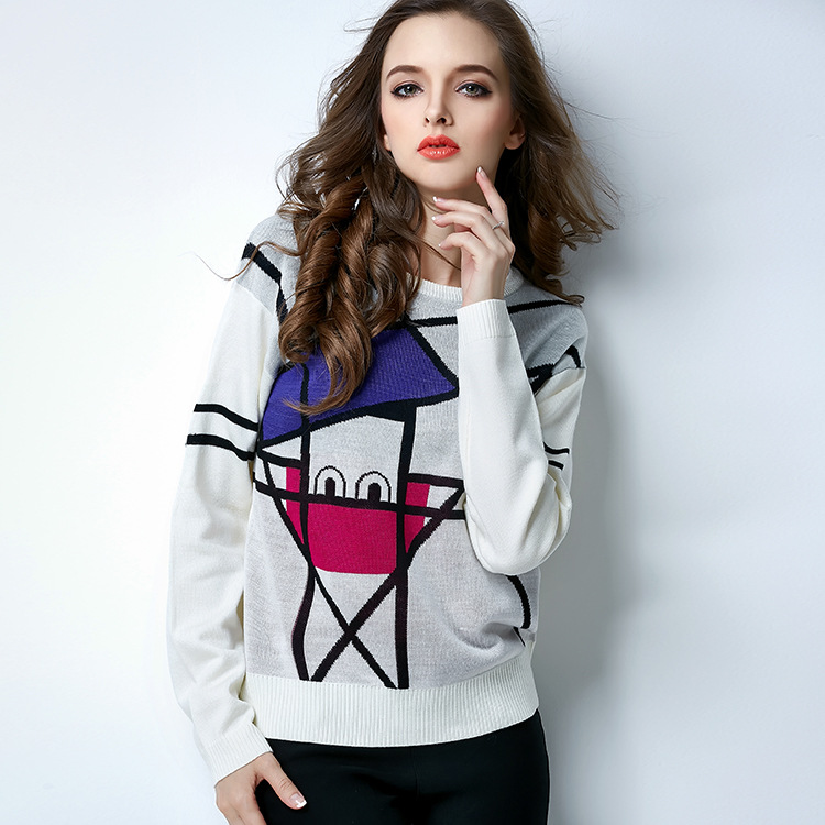 2015年秋冬新款女式套頭毛衣 幾何圖案歐美風(fēng)女裝毛衫 /