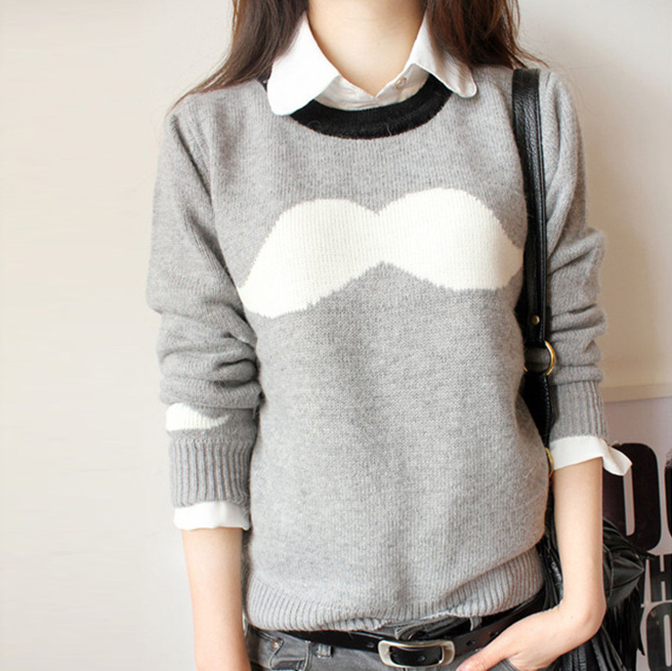 一件代發(fā)2015秋冬韓版女裝襯衫領(lǐng)針織衫小胡子套頭長袖毛衣女外套 /