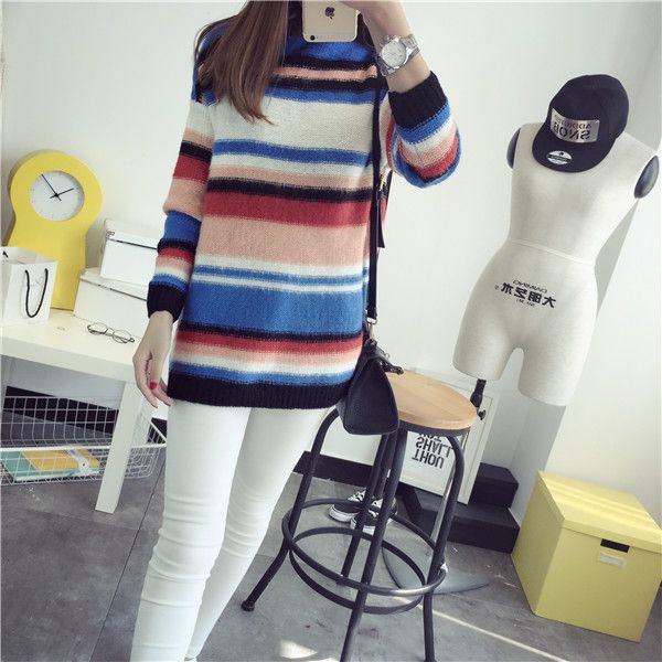 廠家直銷女裝新款外套毛衣女套頭彩虹韓版2015寬松學(xué)生冬裝秋款 /