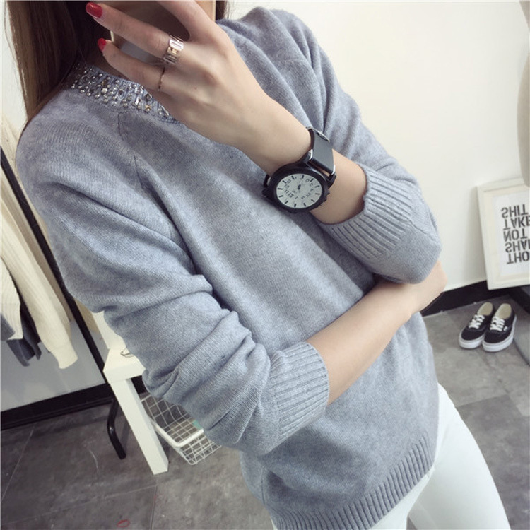 廠家直銷韓版秋季女裝純色毛衣套頭針織衫女式寬松打底衫學(xué)生外套 /