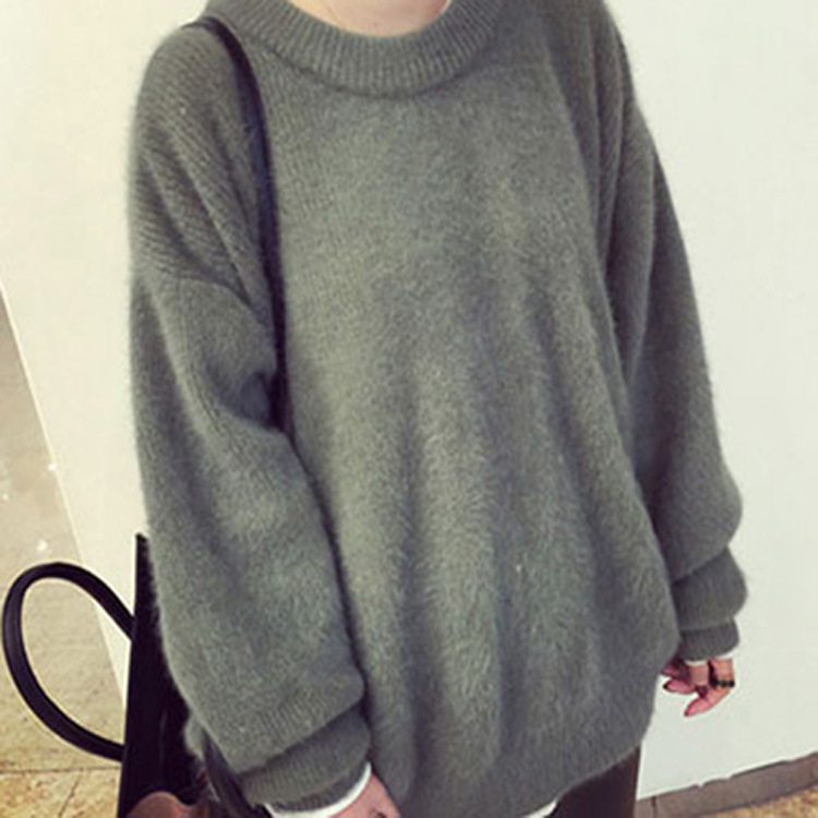 換季清倉原創(chuàng)貂絨長毛圓領(lǐng)韓國芥末綠寬松打底衫休閑時(shí)尚套頭毛衣 /