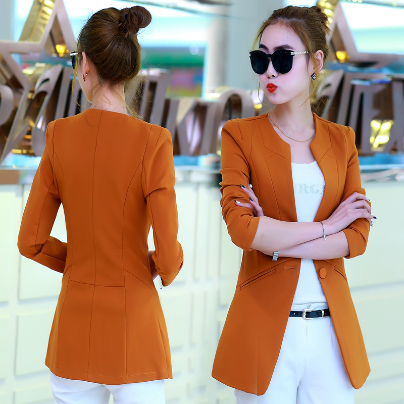 包郵秋裝新款女裝中長款小西裝女韓版修身職業休閑西服女春秋外套 /