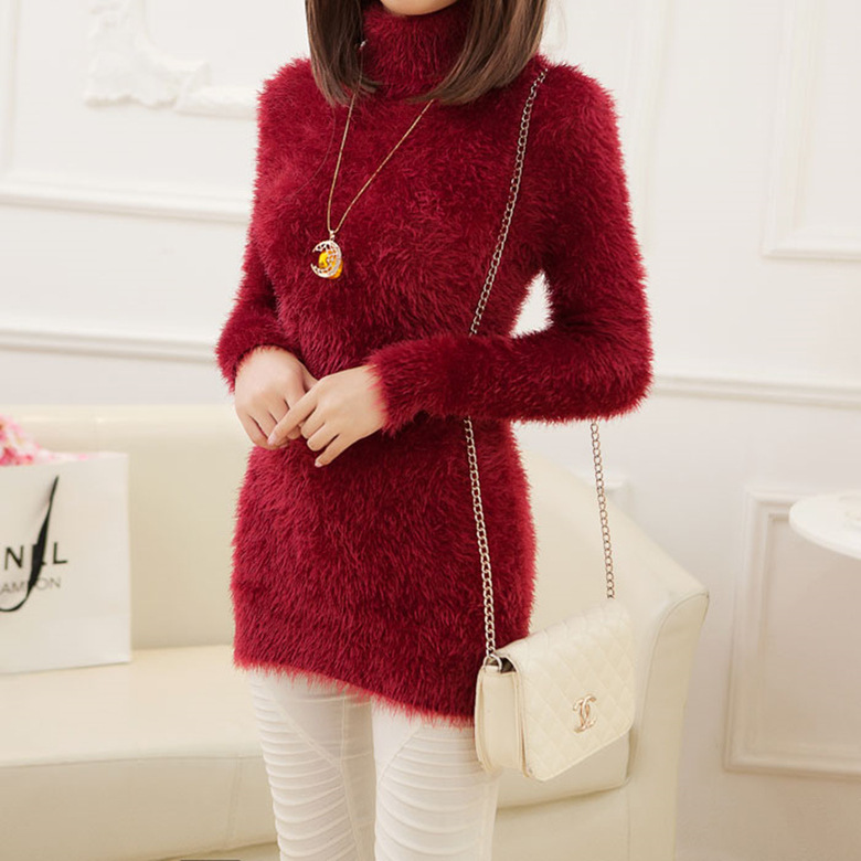 秋冬新款韓版針織毛衣女裝中長款包臀修身高領(lǐng)打底衫馬海毛批發(fā) /