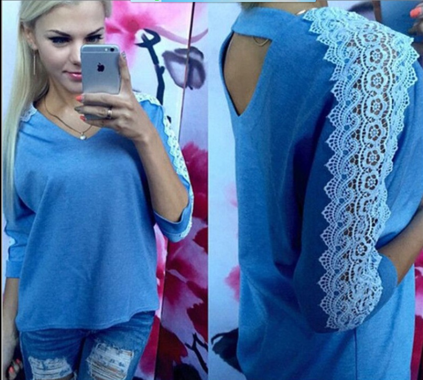 2015速賣通ebay歐美外貿新款熱銷秋裝中袖蕾絲T恤 /