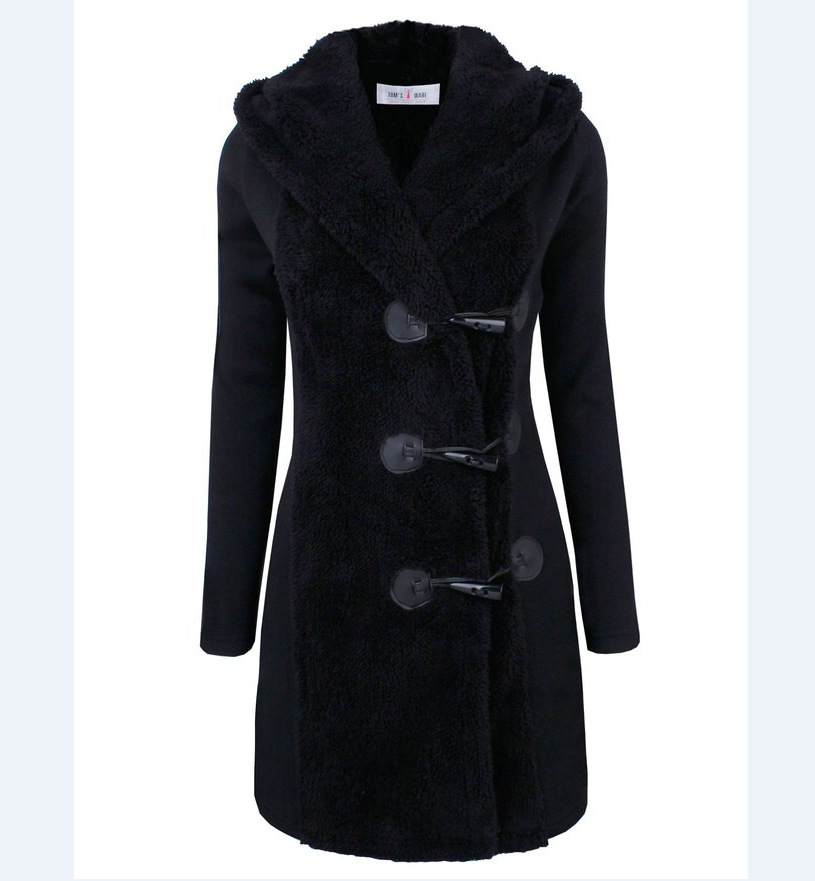 2015歐洲站秋冬新款修身大碼牛角扣連帽毛呢上衣女裝外套 /