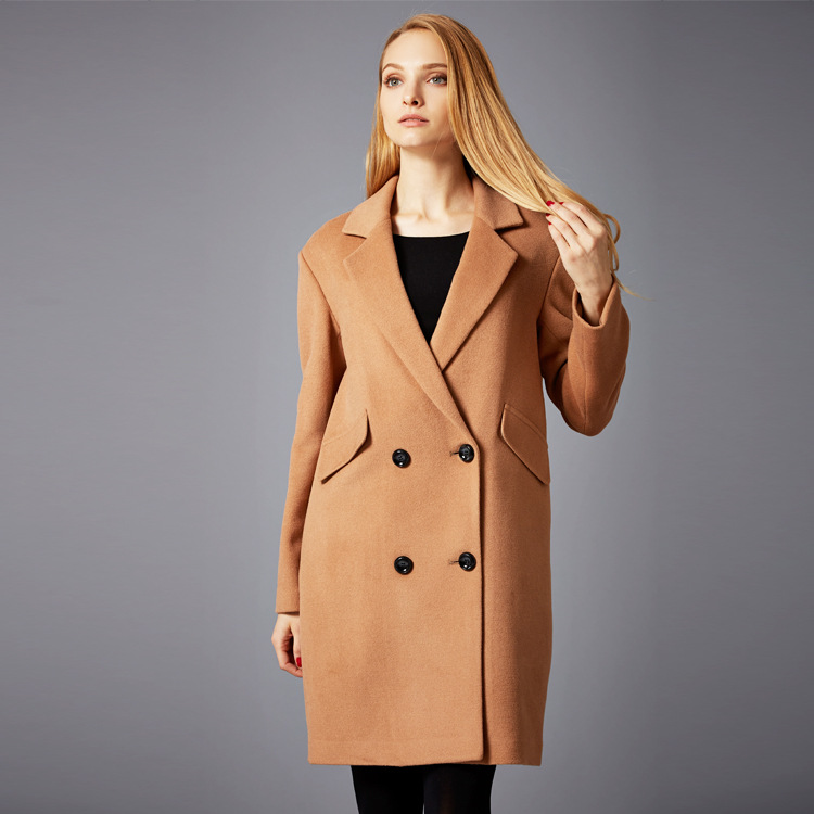 2015新款毛呢外套純手工雙面羊絨大衣女款高端中長款翻領大衣外套 /