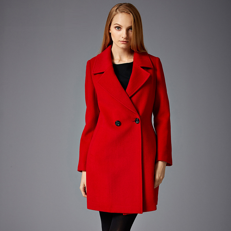 2015秋冬裝高端羊絨大衣毛呢中長款半開領純色呢子大衣女款外套 /