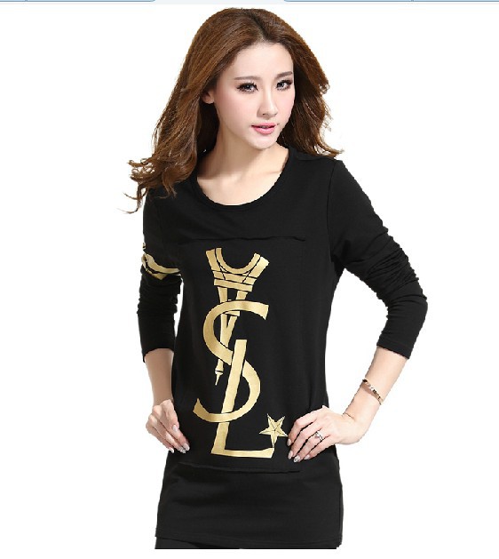 2015新款韓版中長款寬松大碼女裝連衣裙 長袖打底衫學生t恤潮 /