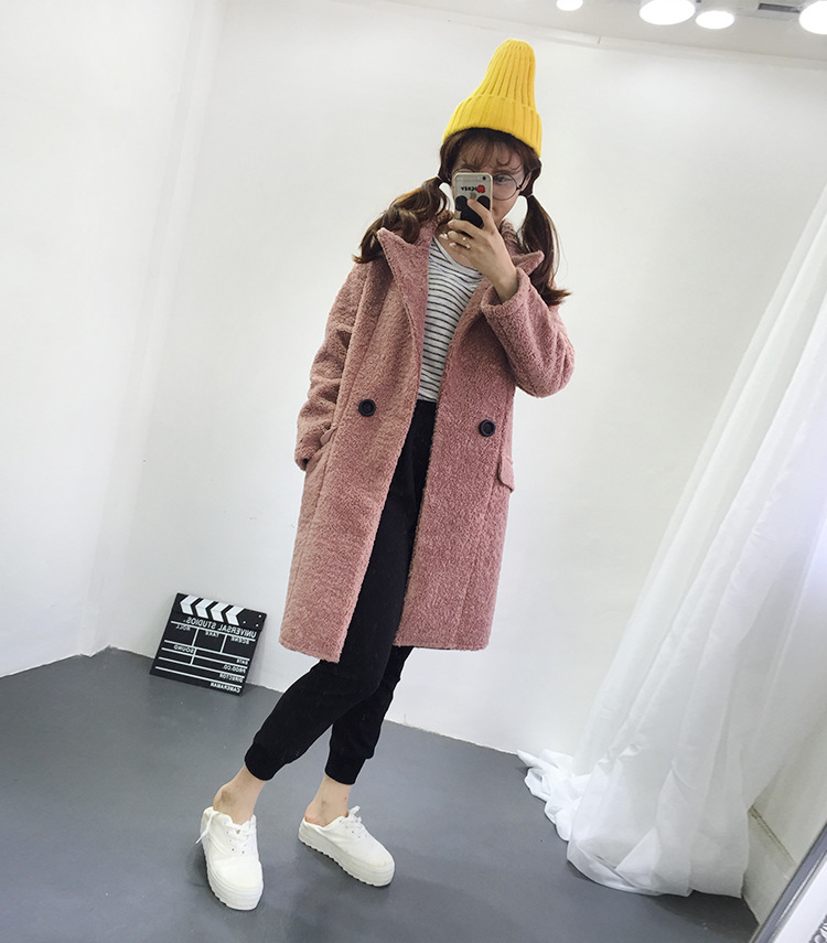 2015實拍 歐美風翻領呢子復合PU皮大衣大碼女裝中長款毛呢外套 /