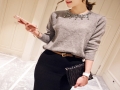 2015冬款新款女裝韓版帶鉆灰色遮肉顯瘦內(nèi)搭毛衣打底衫602281208 /