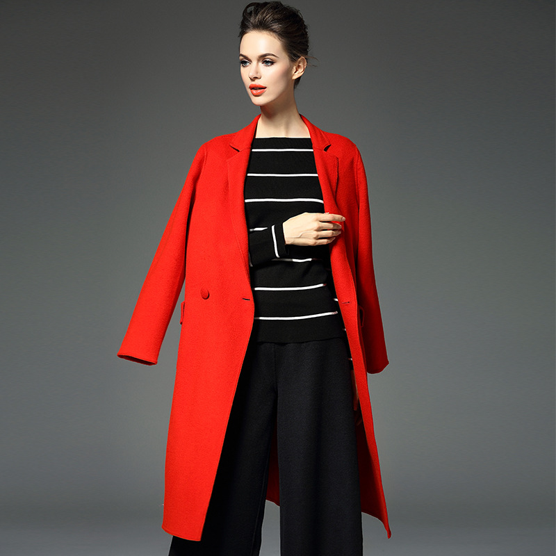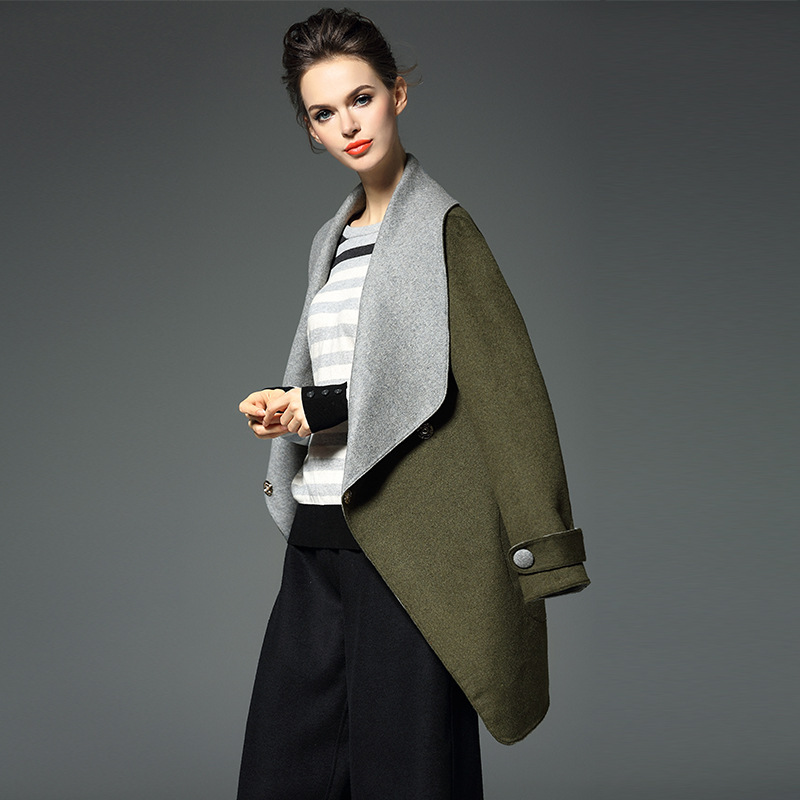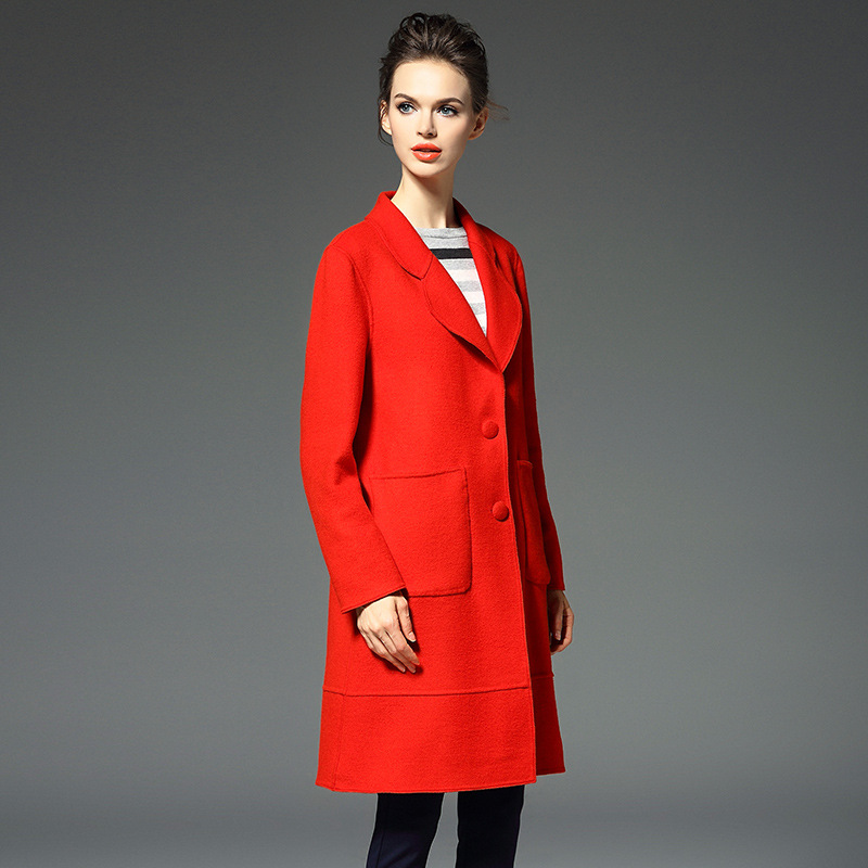 2015秋冬新款歐美雙面呢大翻領暗扣外套羊毛呢子風衣UP812370 /