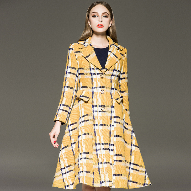 2015年秋冬新款歐美女裝歐州站修身格子羊毛外套呢子大衣UP012350 /