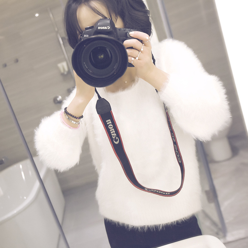 2015秋冬韓版圓領(lǐng)純色短款套頭針織衫毛衣加厚高腰長毛貂絨打底衫 /
