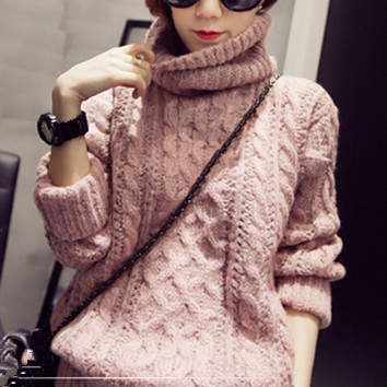 秋冬款毛衣女韓版麻花高領(lǐng)套頭針織衫寬松加厚打底衫短款女裝外套 /