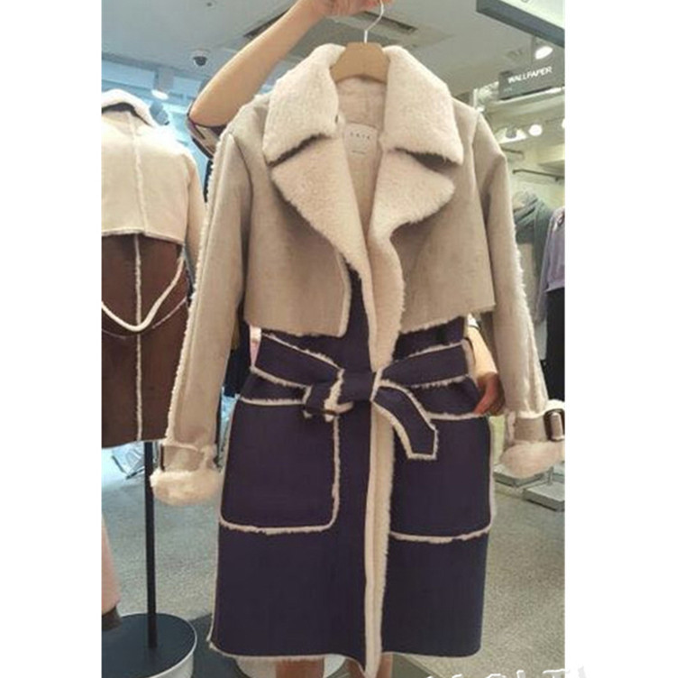 東大門2015冬裝假兩件鹿皮絨羊羔毛外套加厚保暖女中長款棉衣 /