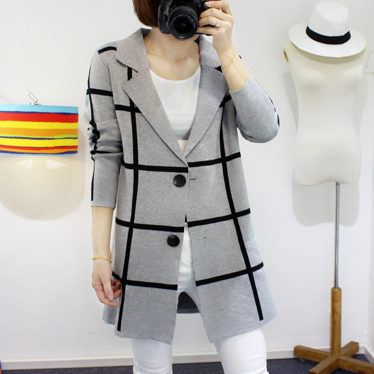 【實拍 現貨】2015新款韓版寬松顯瘦紐扣針織開衫中長款外套 /