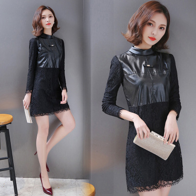 秋冬新款加絨長袖蕾絲連衣裙女2015韓版修身顯瘦打底衫百搭女上衣 /