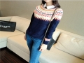 秋季新款民族風太陽花圖案針織衫時尚大碼圓領套頭毛衣打底衫 /