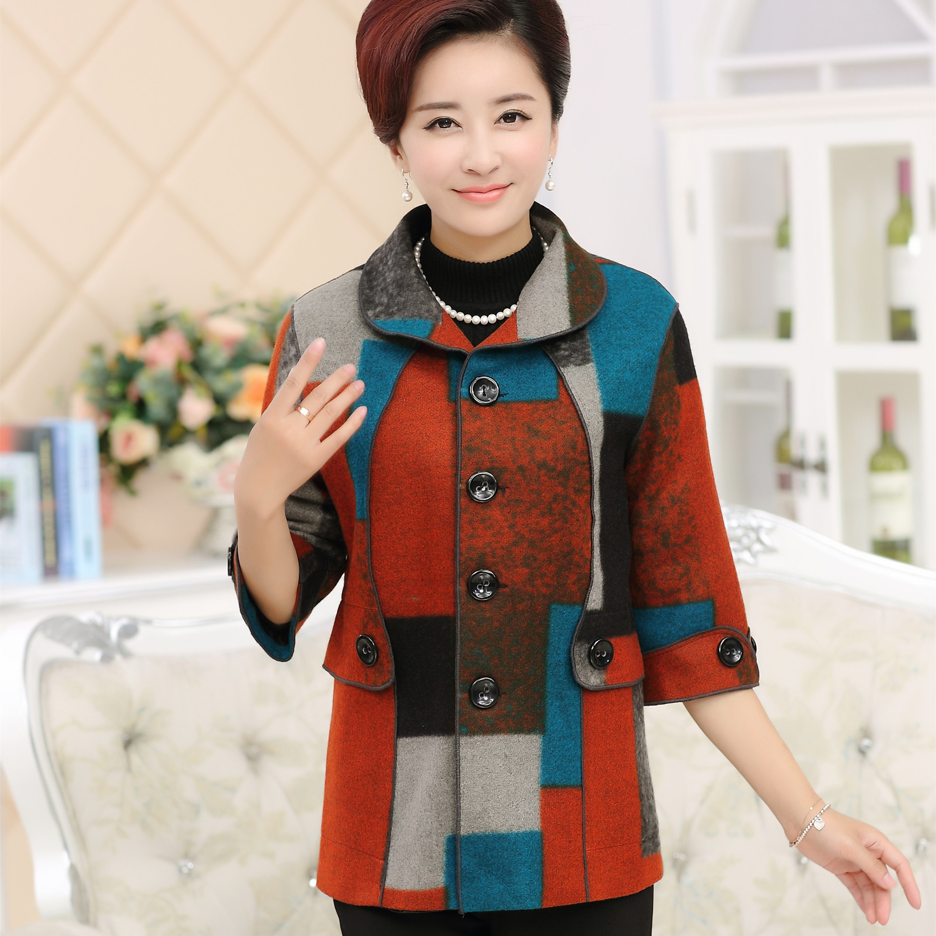 大碼中老年女裝毛呢外套2015新款冬裝保暖呢子中年媽媽裝廠家直銷 /