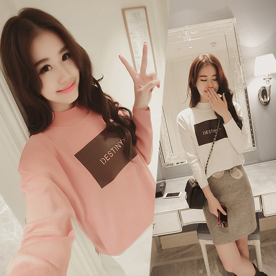 2629#新款冬季新品韓版百搭字母前短后長寬松套頭打底針織毛衣女 /