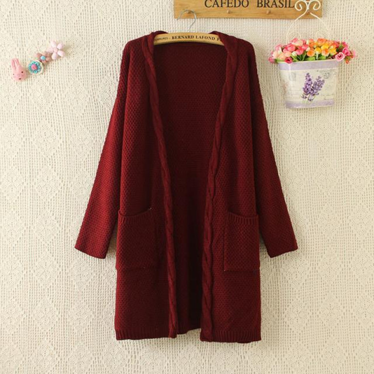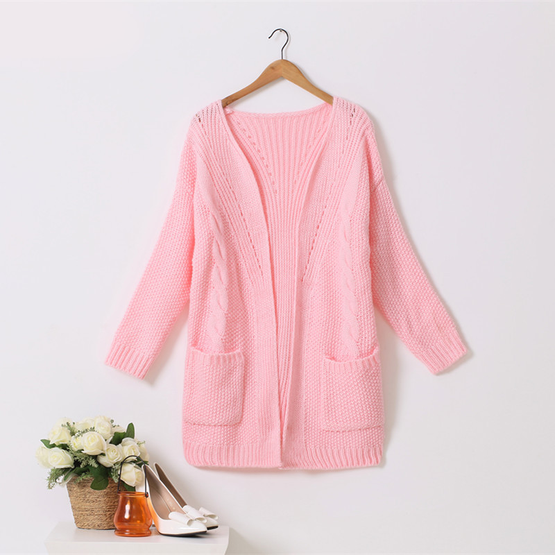 2015秋冬新款韓版學院風麻花口袋開衫毛衣女寬松中長款針織衫 /