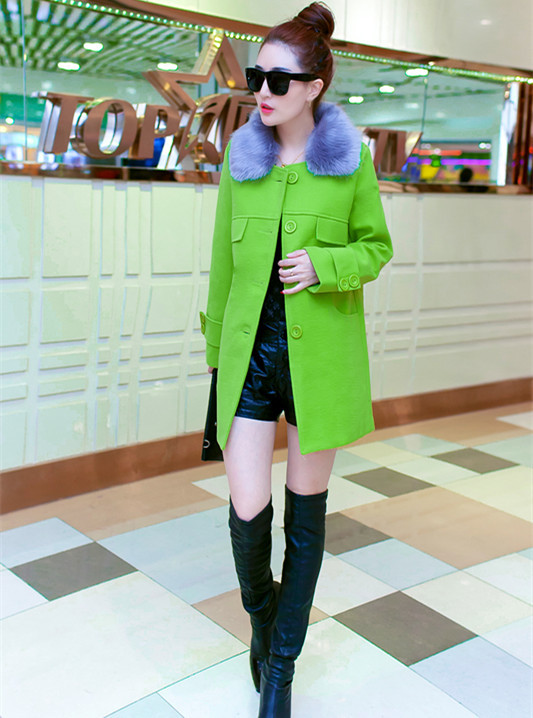 實拍2015冬季新款狐貍毛領(lǐng)韓版毛呢外套女裝修身中長款呢大衣 /