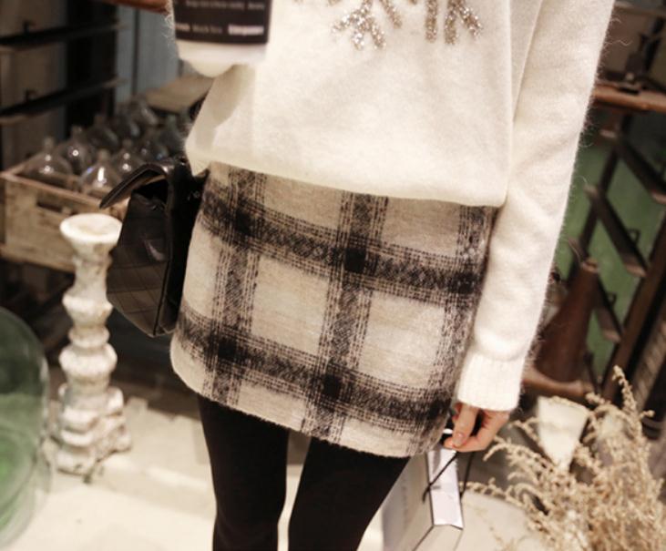2015秋冬短裙 韓國東大門格子毛呢包臀裙短裙半身裙天貓品質 /