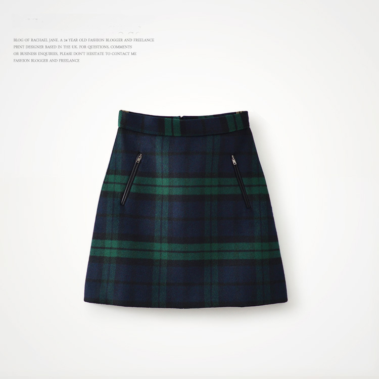 復古格子拉鏈 羊毛呢包臀小A字裙女半身裙 天貓品質 毛呢短裙 /