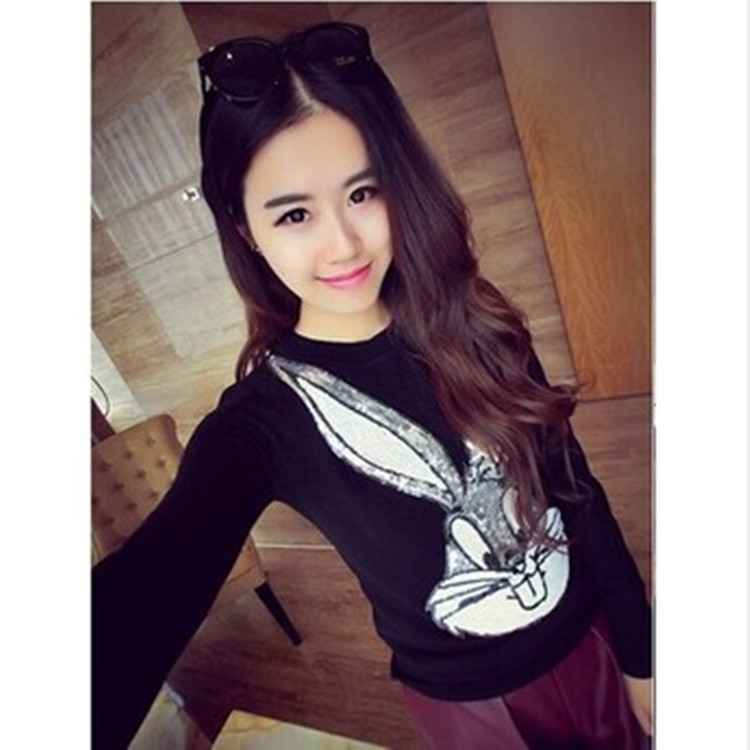 秋冬新款百搭針織衫兔子亮片針織衫卡通兔八哥長袖套頭毛衣 /